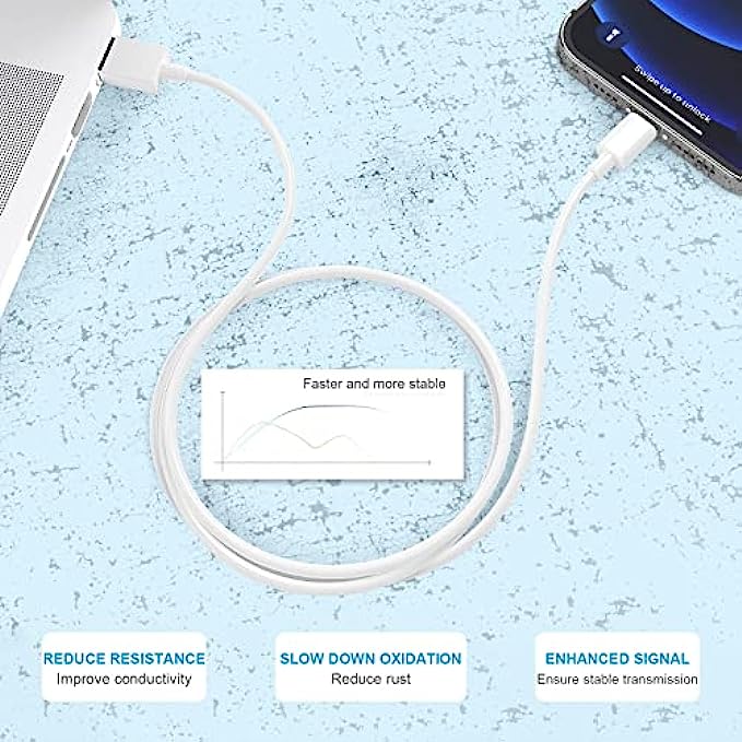 • ♥【MFI Certified Lightning Cable】: Each cable contains an authorization chip issued to ensure 100% compatibility with iPhone.Built with terminal and smart chip. connector with a lightning end, ensured safe charging for your devices. Enjoy fast data transfer, syncing and charging.