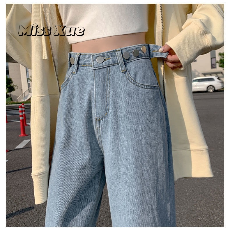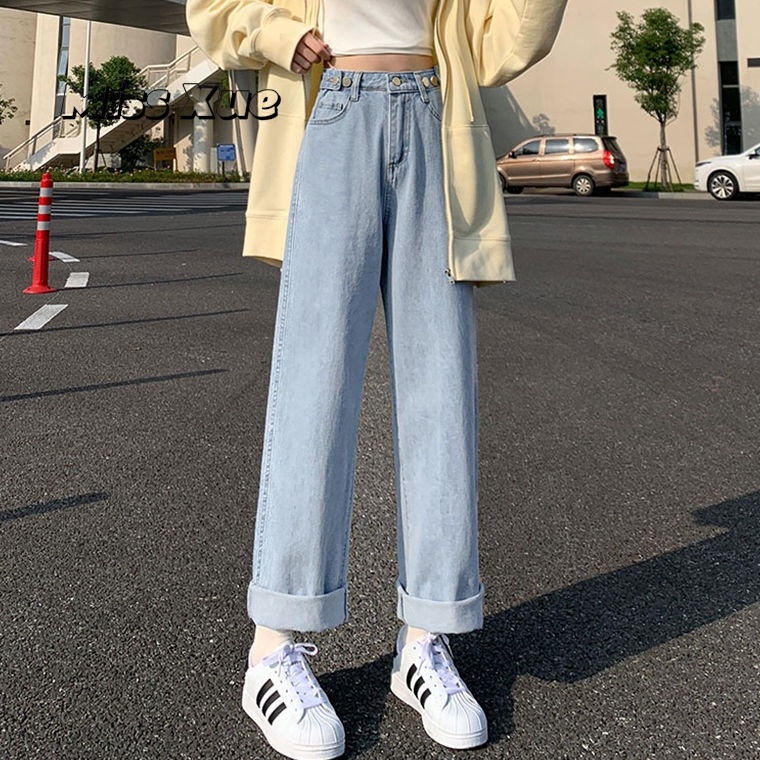 【Miss Xue】台灣出貨直筒褲 寬松 牛仔褲女 高腰 淺色 高腰 顯瘦 小個子 拖地褲 闊腿褲 女生褲子 長褲女