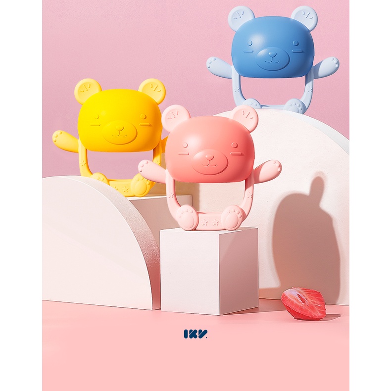 爱咔威\/IKV小熊护手牙胶婴儿 硅胶防吃手环神器宝宝咬胶玩具可水煮加收纳盒