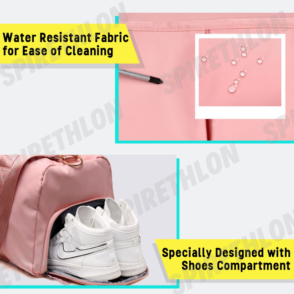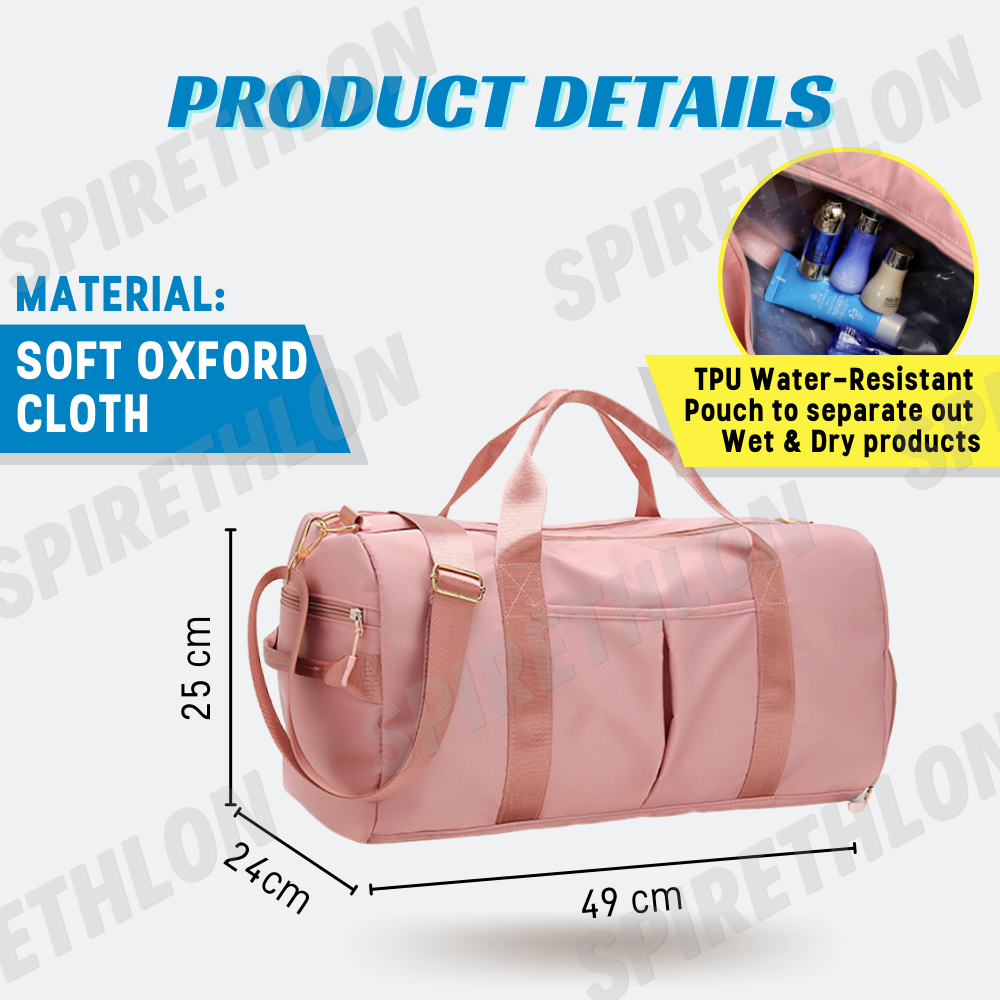 Colour:pink Really loved this bag when it came! Pretty spacious & decent looking, suitable for travel or gym bag. I liked the side shoes compartment.