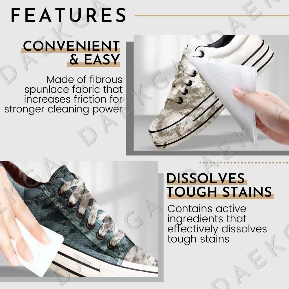 Material Quality:yet to try but seems legit Colour:as per sold Fast delivery and great quality product. Tried it and smelled it. It's a normal wet tissue. Suggest to clean off the stain on the day itself when the shoe is still new and white.