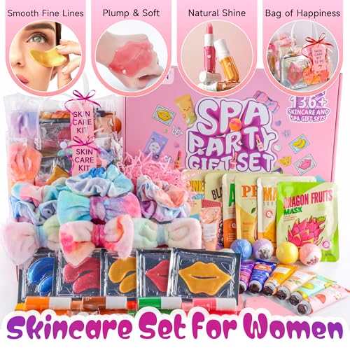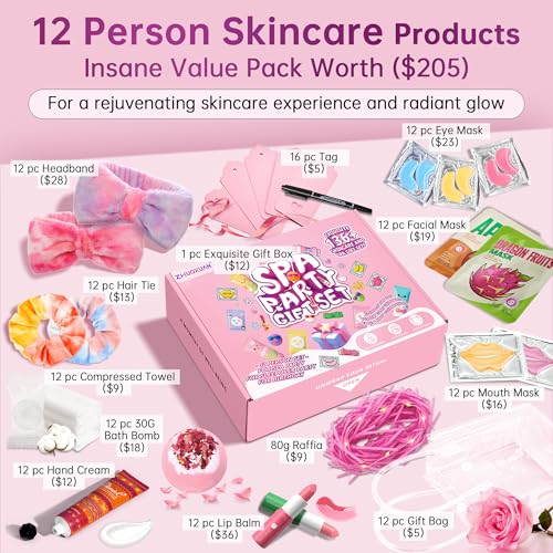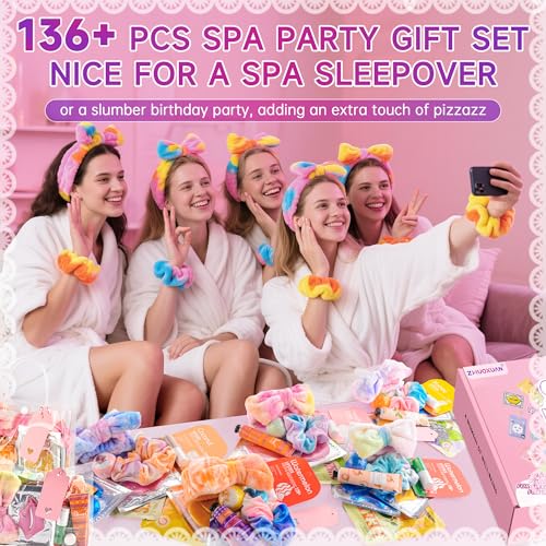 136Pcs Spa Party Supplies Set - 12 Spa Day Kits with Face/Lip/Eye/Hand/Foot Care,Party Favors for Sleepovers,Birthdays,Slumber Party & Relaxation,All Skin Types Safe