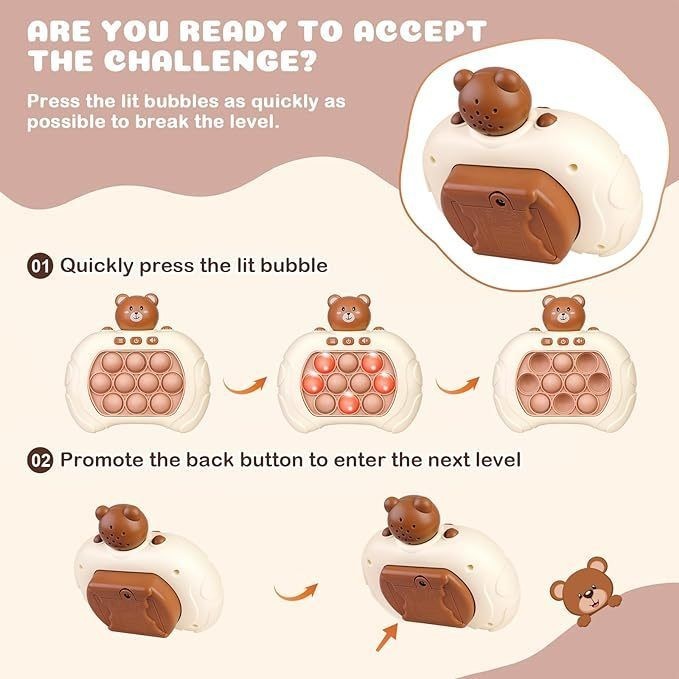 Quality:Cute and lovely! Appearance:Greattttt Arrived fast in just 3 days thanks seller for super cute lovely pop it game! Requires 3x AAA ? batteries. Hope have promo again thanks seller love it!!!❤️❤️❤️???
