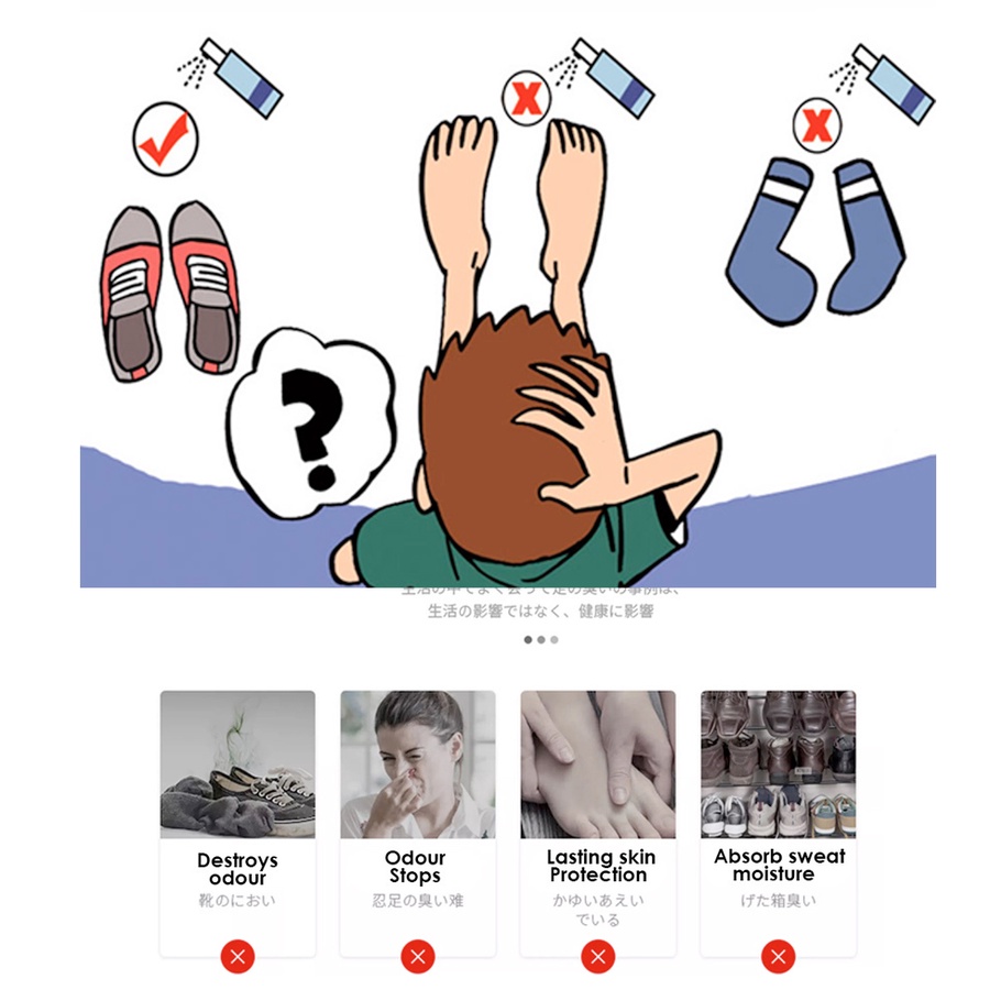 Formulation:good Performance:Good Suitability:good Good to use upside down to spray inside the shoe . Smell good ?? . I will recommend my friend to buy to spray their shoe