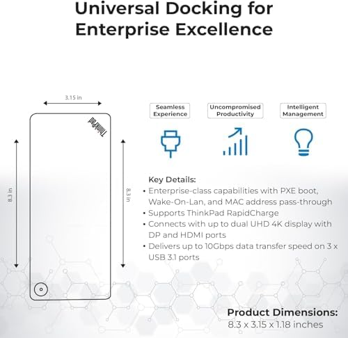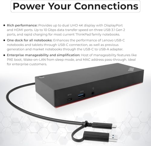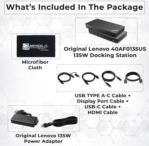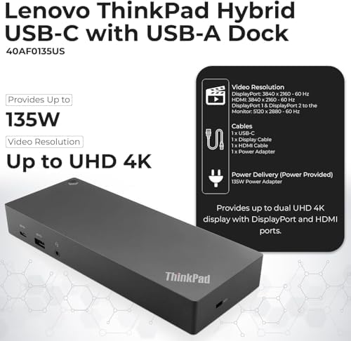Sponsored Ad - Lenovo 40AF0135US Thinkpad Docking Station Dual Monitor Hybrid USB-C with USB-A - 1 Year Warranty, with 135W Adapter + HDMI Cable + DisplayPort Cable + USB-C Cable + Microfiber Cloth (R