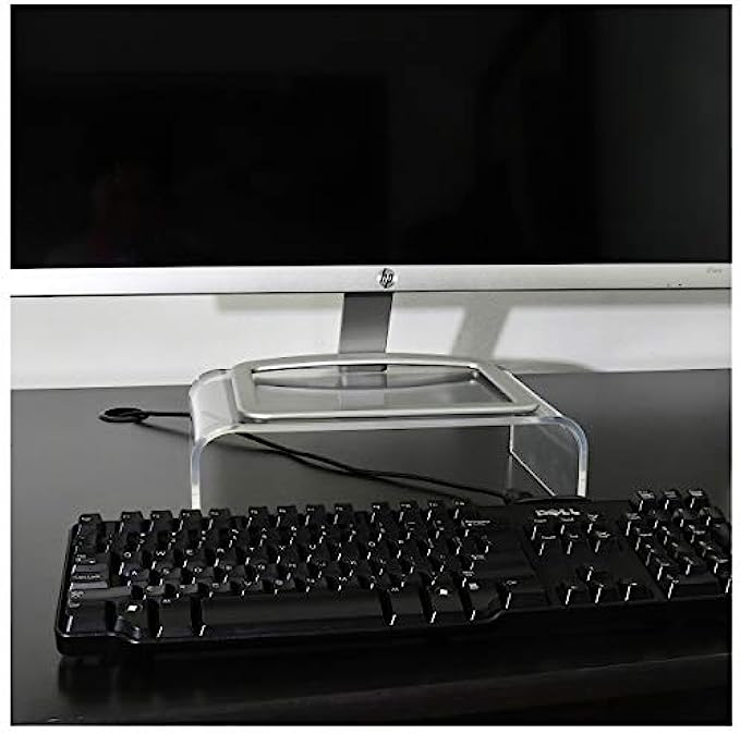 • ⭐ MODERN: AMT Acrylic Monitor Stand is construction with smooth edges and a beautiful clear transparent platform, perfect size for any desk. These stands are just the right height and work with any decor. This Acrylic Monitor Stand also wide enough for the keyboard to fit under and makes for quick dusting.