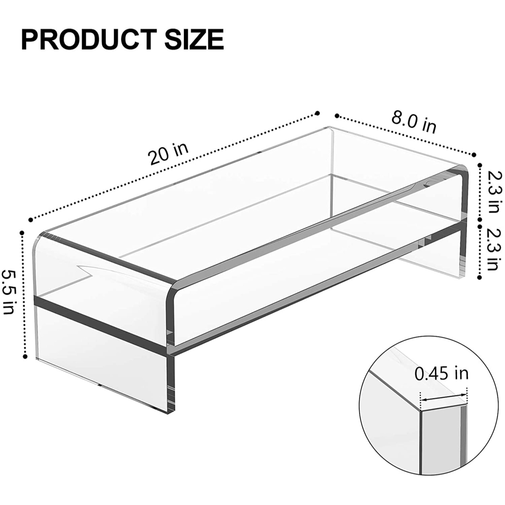 Acrylic Computer Monitor Laptop TV Stand Riser 12MM Thickness