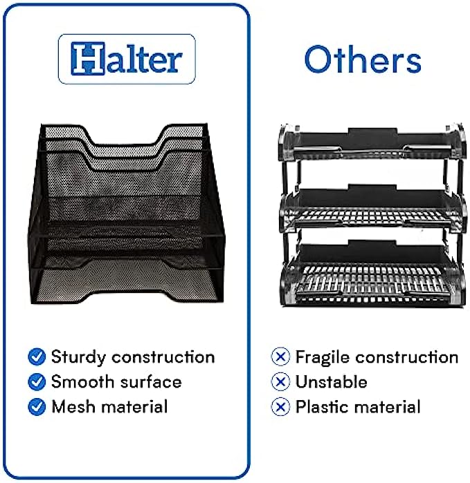 • Durable Construction - Solidly constructed from steel mesh, this Halter office desk organizer has a smooth surface that's a pleasure to work with, making it an ideal desk file organizer for office or home