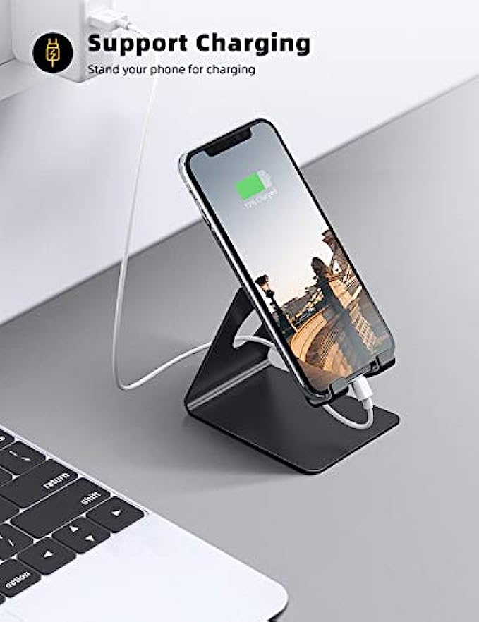• 【Stable and Anti-scratch】The iPhone stand is made of high-quality aluminum alloy with a nice finish. Stable and easy to watch Youtube or FaceTime. Besides, rubber non-slip pads protect the surface of your phone case and desk from scratches.