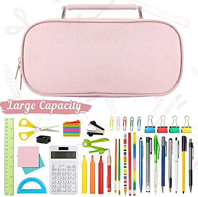 Large Capacity Pencil Case for Kids, Pink Pencil Case Organizer Simple Portable Cosmetic Travel Bag Pen Case with Easy Grip Handle for Office School Supplies Pencil Pouch for Teens Student, Pink