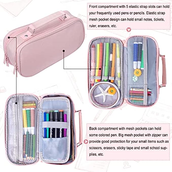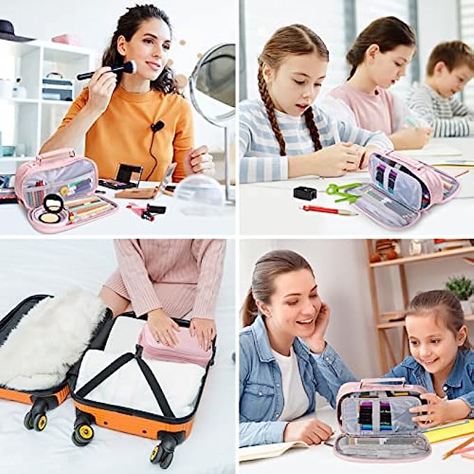 • Multiple Usage:The pink pencil case is suitable for women, girls, and kids. Easy to use, not only can cute school supplies be used as a pencil bag, but also can be used as a cosmetic bag, makeup cup, make up brushes holder, stationery storage bag, coin purse, office use etc. Convenient for small or big items, the zipper stationery can prevent items falling out.