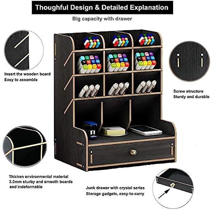 ✎【CREATIVE DIY DESIGN】: This Desktop organizer needs to be assembled By Yourself, it's full of the joy when you assemble the desktop organizer . Installation according to the instructions or video is very simple ,made up of 15 boards to assemble,fix it with screws. A single man can easily assembly it within 20 minutes. Instantly turn it into an eye-catching stationary.