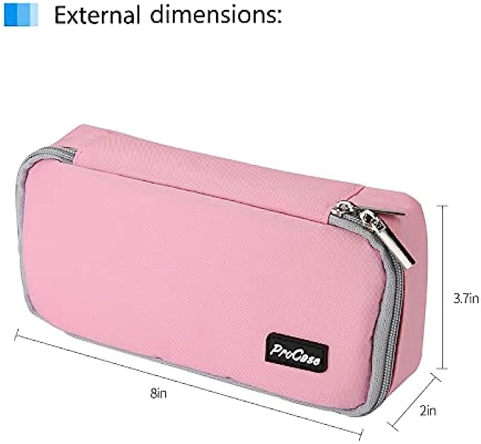 Pencil bag dimensions: 8.0"×3.7"×2.0" inches, generous size for easy storage, it can fit up to 30 pens and pencils as well as erasers, calculator, mini stapler, sticky tape and other school supplies perfectly The interior mesh pocket provides roomy space for keeping small notes, cards, tickets, erasers and paper clips safely in one place; User-friendly design allows easy identification for all your little stuff Durable and water-resistant material keeps your stationeries well-protected and prevents them from dust, scratches and bumps, easy to clean; Double smooth zippers offer quick access to items inside Lightweight and compact, convenient to put in the backpacks or purses when heading for school or office, no more digging up in your bag Multifunctional case could serve multiple purposes, it can be even used as a travel case, makeup bag, keys bag, coins pouch, cellphone pouch and more to fits all your basic daily needs