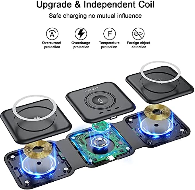UCOMX Nano 3 in 1 Wireless Charger,Magnetic Foldable Charging Station,Fast Wireless Charging Pad,Compatible with iPhone 13/12/SE/11/XS/8,Samsung Galaxy,AirPods Pro,Apple Watch(Adapter Included)