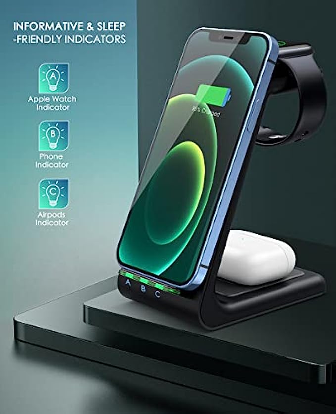 Wireless Charging Station,3 in 1 Fast Charging Station,Wireless Charger Stand for iPhone 13/12/11 Pro Max/X/Xs Max/8/8 Plus, AirPods 3/2/pro, iWatch Series 7/6/5/SE/4/3/2, and Samsung Phones
