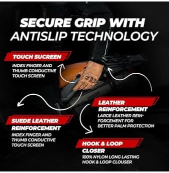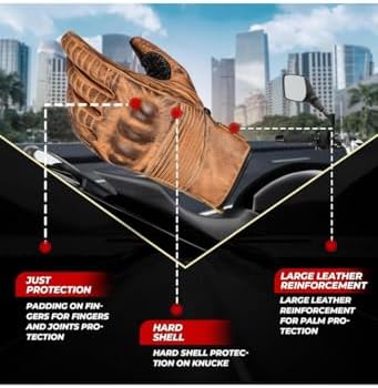 Motorcycle Gloves Men's Leather Motorbike Gloves Touchscreen Function - Protectors Men & Women for All Weather with Non-Slip Pads