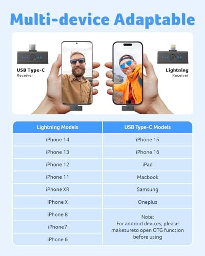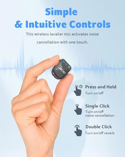 Wireless Lavalier Microphone for iPhone/Android/PC/Laptop Portable Mini Clip on Mic with Lightning + USB C Plug, 48KHz 24Bit, Noise Cancellation, 24H Battery for Video Recording