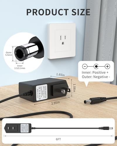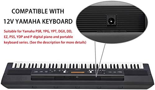 12V 2A AC Power Supply Adapter Charger Cord for Yamaha PSR, YPG, YPT, DGX, DD, EZ and P Digital Piano and Portable Keyboard Series, Replacement PA-130 PA-130B Adapter