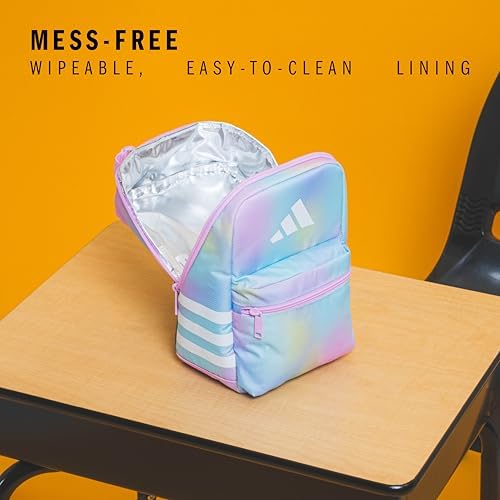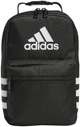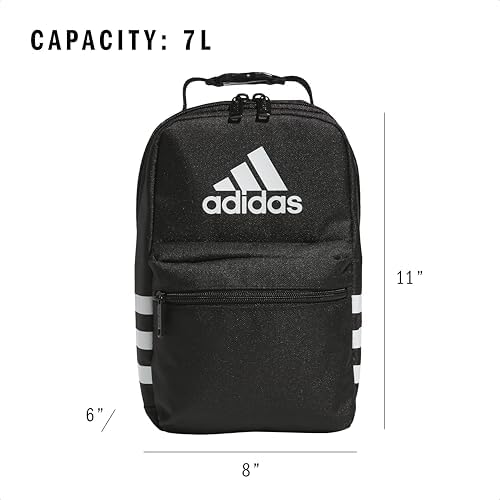 adidas Santiago Lunch Bag Cooler for Women and Men, Insulated Food Container Box with Mesh Pocket, Black/White, One Size