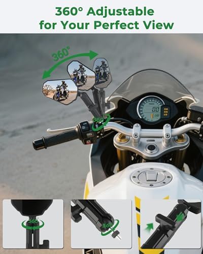 Sponsored Ad - Adventure Motorcycle Mirrors, VOUTRAK Universal Convex Rear View Mirror, M8 M10 Bolt & 7/8" Handlebar Mount, Foldable, Ball Joint, 360° Adjustable, Anti-Vibration for Dirt Bike, ATV, Sc