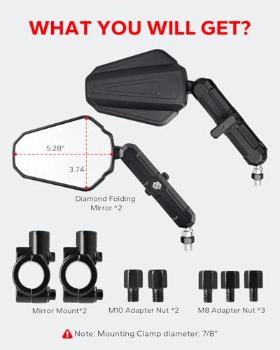 Sponsored Ad - Adventure Motorcycle Mirrors, Adjustable ATV Motorcycle Rear View Mirrors with 7/8" Handlebar Mount M8 M10 Bolts Fits for Scooter ATV ADV Moped Dirt Bike Quad