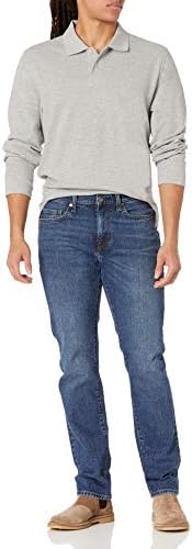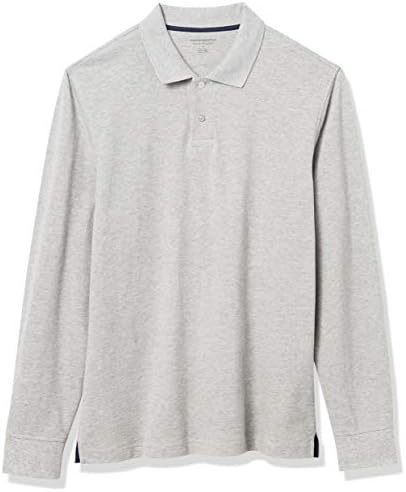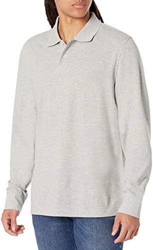 Mens Long Sleeve Polo Shirt with Collar, Regular-Fit Pique