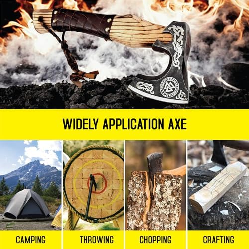 Sponsored Ad - Viking Axe Ashwood Handle Handmade Carbon Steel Blade, Outdoor Camping Hunting, Norse Hatchets Axes, with Leather Wrapped Handle & Leather Sheath Wood Splitting Axes