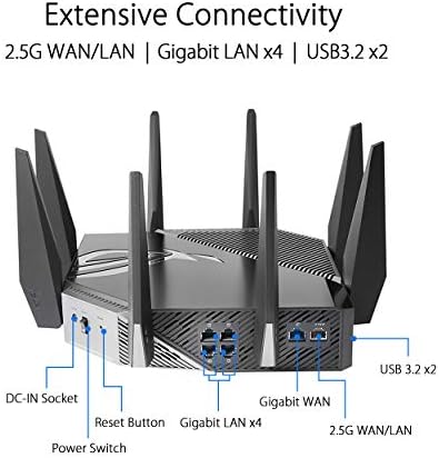 ROG Rapture GT-AXE11000 Tri-band WiFi 6E Extendable Gaming Router, 6GHz Band, 2.5G Port, Triple-level Game Acceleration, VPN Fusion, Subscription-free Network Security, AiMesh Compatible