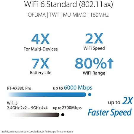 RT-AX88U PRO AX6000 Dual Band WiFi 6 Router, WPA3, Parental Control, Adaptive QoS, Port Forwarding, WAN aggregation, lifetime internet security and AiMesh support, Dual 2.5G Port