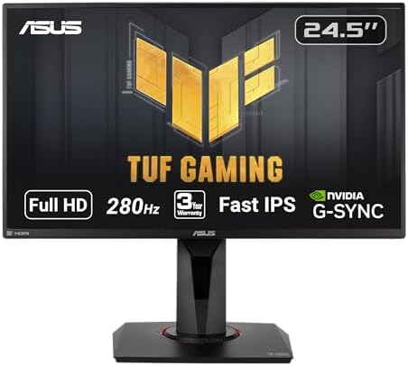 TUF Gaming VG259QM 24.5” Monitor, 1080P Full HD (1920 x 1080), Fast IPS, 280Hz, G-SYNC Compatible, Extreme Low Motion Blur Sync,1ms, DisplayHDR 400, Eye Care, DisplayPort HDMI BLACK