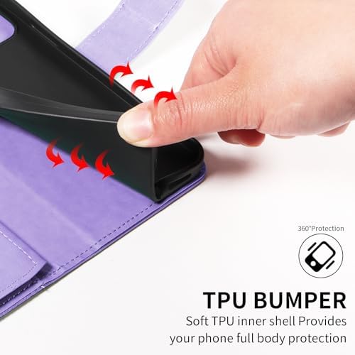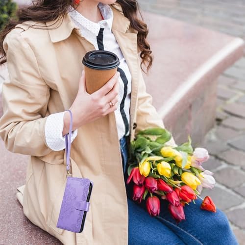 Phone Case for OnePlus Nord N300 5G Cell Wallet Cover with Tempered Glass Screen Protector and Flower Flip Credit Card Holder Slot Stand 1+ N 300 N3005G CPH2389 Women Men Light Purple