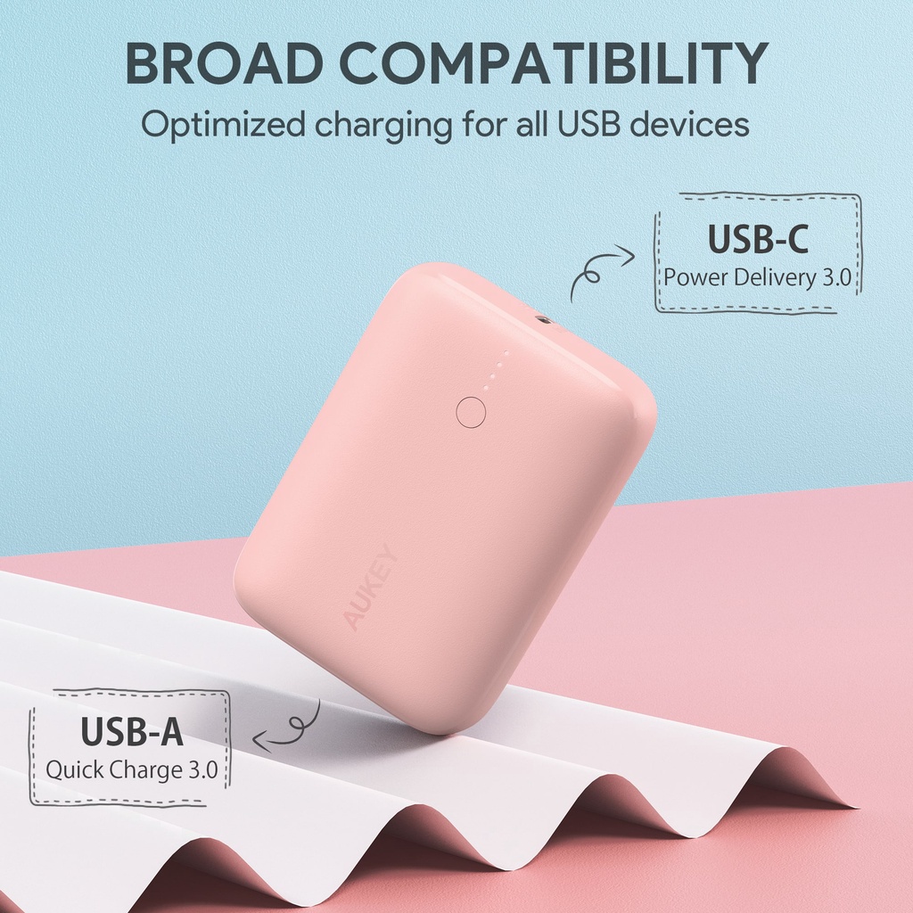 Best Feature(s):Pretty pink and compact ? Value For Money:Yes if you got the $$$ Product Quality:Solid build Fast delivery! Came fully charged but still able to charge. Have yet to use em. Like that it’s compact and it’s in pretty pink haha perhaps good for 1 full charge of iPhone 13 pro. Not as heavy as I expected it would. Been contemplating on this as Aukey isn’t a cheap brand. Hope it will last!