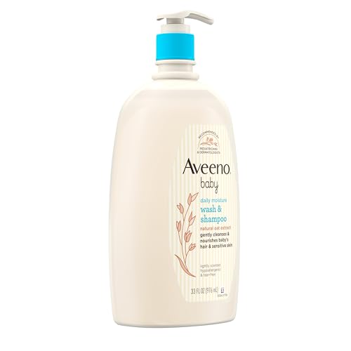 Aveeno Baby Daily Moisture Gentle Bath Wash & Shampoo with Natural Oat Extract, Hypoallergenic, Tear-Free & Paraben-Free Formula For Sensitive Hair & Skin, Lightly Scented, 33 fl. oz
