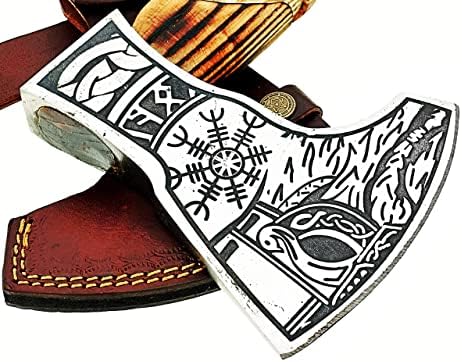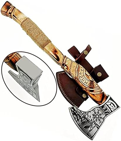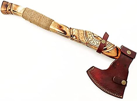 Sponsored Ad - AX-7000 Custom Gift Forged Carbon Steel Viking Axe with Rose Wood Shaft, Viking Bearded Camping Axe