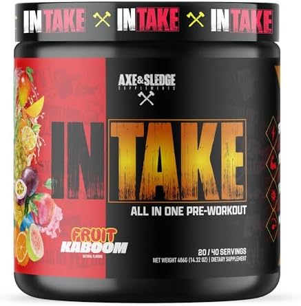 Axe & Sledge Intake All-in-One Pre-Workout | 300mg Caffeine | L-Citrulline, Beta Alanine, Betaine for Performance & Focus | Pre-Workout for Men & Women | 20/40 Servings, Fruit Kaboom