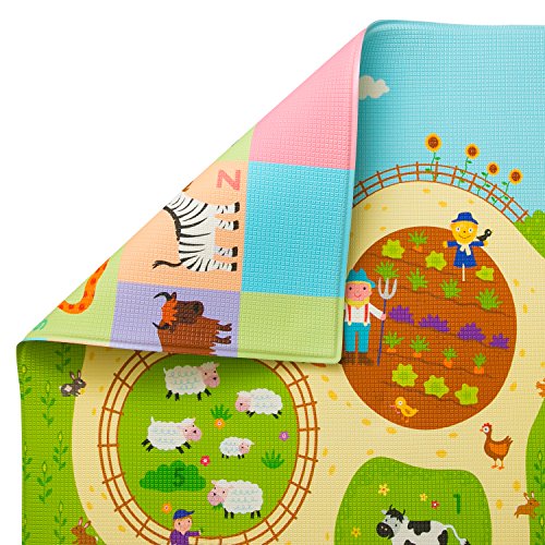 Sponsored Ad - Baby Care Play Mat (Medium, Playful - Busy Farm) 73’’ x 49’’ Original One-Piece Reversible Rollable Waterproof Play Mat for Infants, Babies, Toddler, and Kids