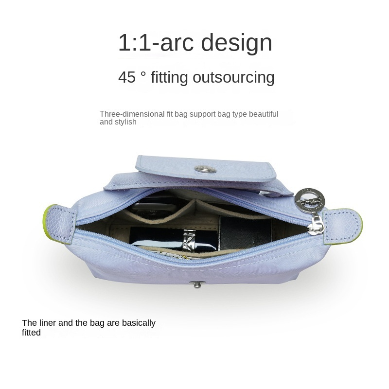 Color: beige, beige Material: felt True to the description: ok The form lining is ok, put it in a Longchamp bag and then stand in a beautiful form, and divided into many compartments for easy storage