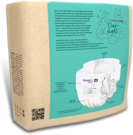 Hypoallergenic Overnight Baby Diapers, Eco-Labeled Overnight Diapers, Totally Chlorine-Free, Skin Friendly, Super Absorbent - Size 4 (24 Count)