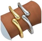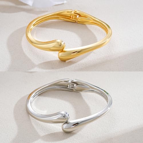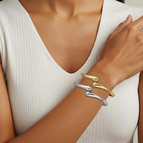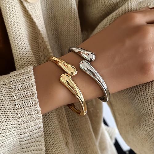 Gold Bangles Bracelet for Women Trendy, 2 Pcs Dainty Chunky Cuff Bracelet Stack Gold and Silver