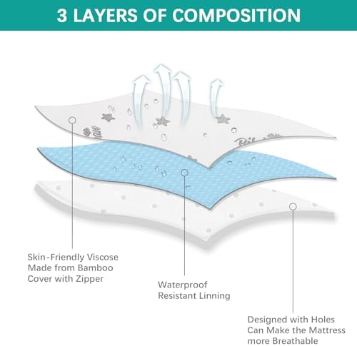 Bassinet Mattress Pad 25 x 36 Compatible with Dream On Me Nest/Zoom Portable/Zodiak, Pamo Babe Portable, Cosco Portable and Baby Trend, Waterproof Breathable Baby Foam with Removable Zippered Cover