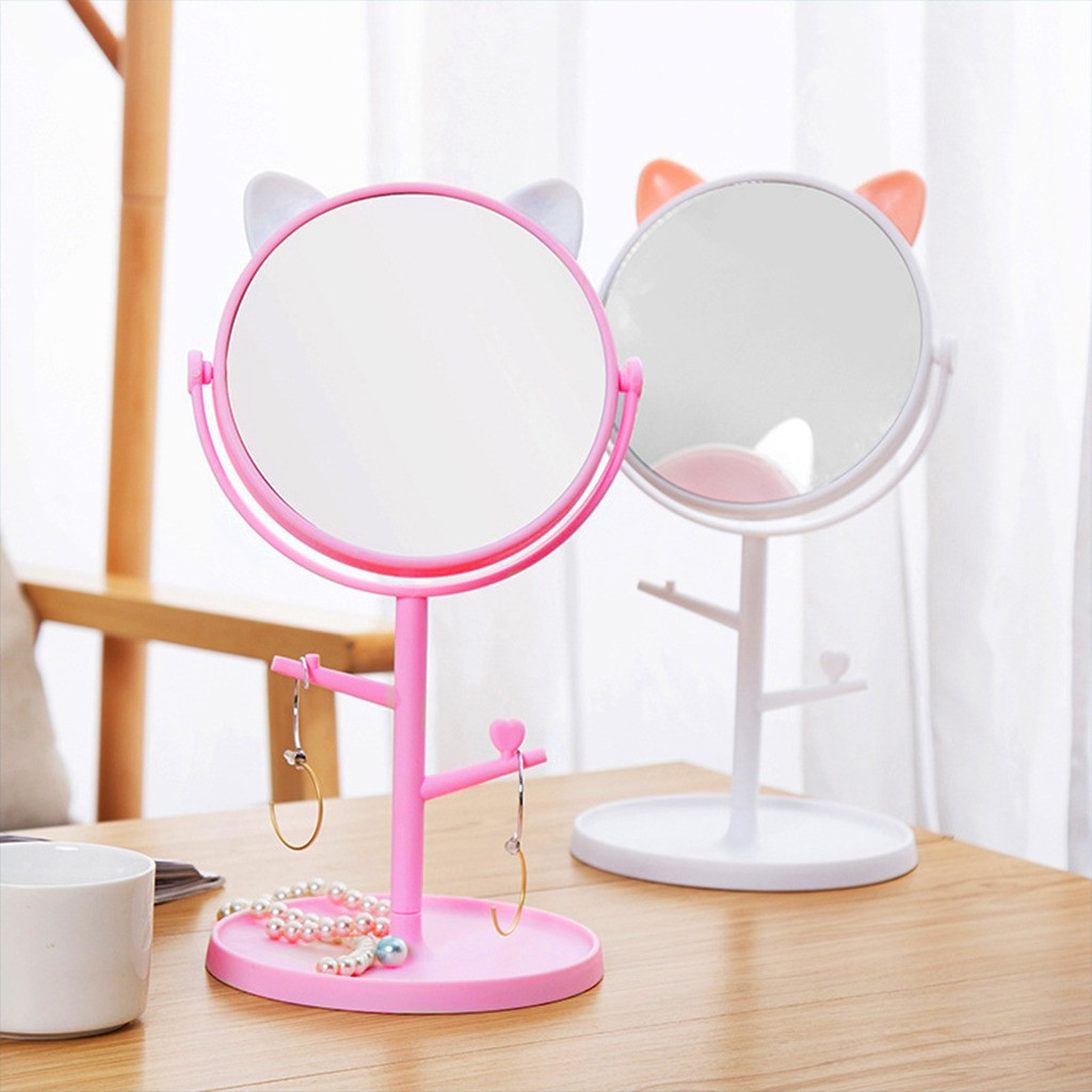 Beauty? Cat Ear Long Stand Kitty Makeup Mirror Rotatable Swivel Desk Mirror Beauty Makeup Mirror Mirror