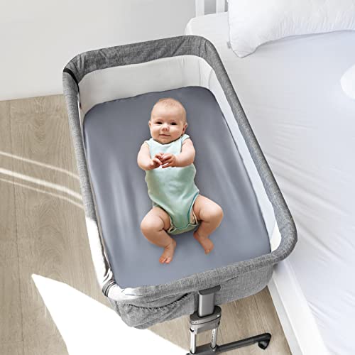 Bassinet Sheets for Baby Boy Girl, Satin Bedside Sleeper Sheets to Fit Mika Micky&Baby Delight&Dream On Me&Baby Joy Bassinet, Bassinet Sheet for Baby Hair (33"x20"x5") Silk Bassinet Sheets, Grey