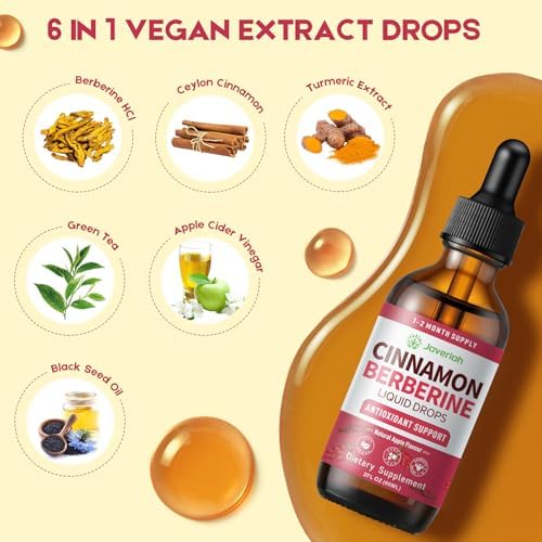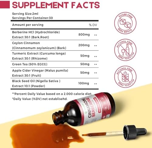 Sponsored Ad - Berberine Drops with Ceylon Cinnamon Bitter Supplement,Berberine HCL Liquid Drops with Turmeric,Green Tea,Apple Cider Vinegar,Black Seed Oil for Overall Support & Digestive System 2 FL