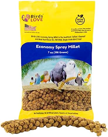 Birds LOVE Economy Special Spray Millet GMO-Free (No Stems Only Edible Tops) for Birds Cockatiel Lovebird Parakeet Finch Canary All Parrots Healthy Treat - 7oz