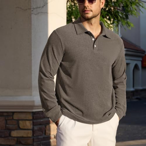 Sponsored Ad - Men's Casual Polo Shirts Long Sleeve Basic Thermal Pullover Tops Classic Collar Solid Golf Shirts