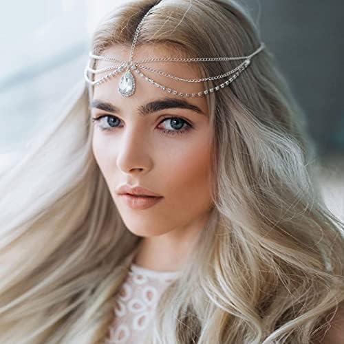Catery Head Chain Jewelry Crystal Bohemia Hair Chain Bride Wedding Head Dress Rhinestone Headpiece Halloween Christmas Prom Hair Jewelry for Women