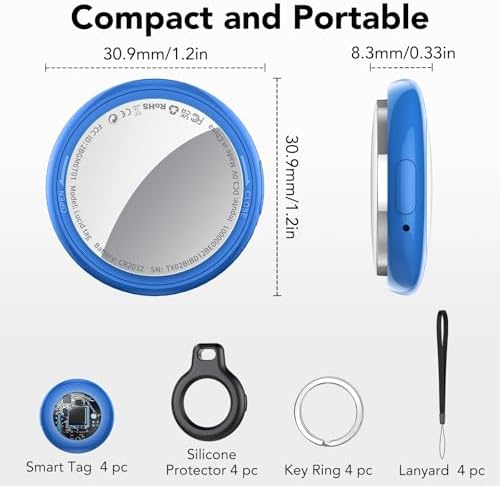 2025 New [Apple MFi Certified] (iOS Only) Air Tracker Tag-4 Pack, Bluetooth Tracker for Apple Find My, Replaceable Battery, Key Finder and Item Locator Smart Tag for Keys, Bags, Luggage, etc (Blue)