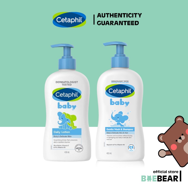 Cetaphil Baby Gentle Wash and Shampoo I Daily Lotion (With Shea Butter) 400ML | Baby Massage Oil 200ml [Baebear.sg]