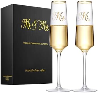 Sponsored Ad - Mr and Mrs Wedding Champagne Flutes with Long Stem,Bride and Groom Toasting Crystal Glass Set, Bridal Shower Gift, Engagement Gifts for Couples, Newlyweds, Anniversary