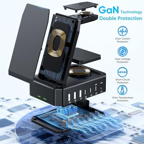 300W Charging Station for Multiple Devices Apple,10 in 1 Wireless Charger for iPhone,GaN III USB C 65W PD Fast Charging Stand Dock for MacBook,iWatch&Airpods (Wireless Charging Only for Apple)
